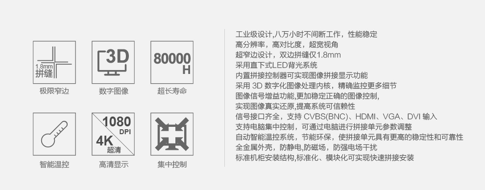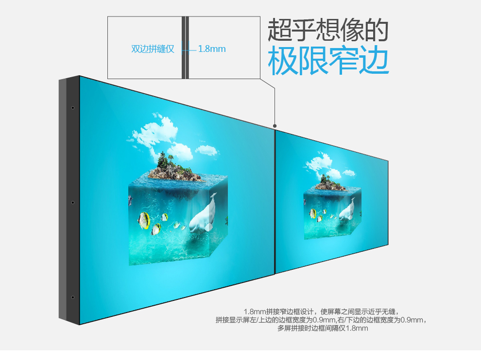 ◆超窄边设计,双边拼缝1.8mm,真正做到无缝拼接