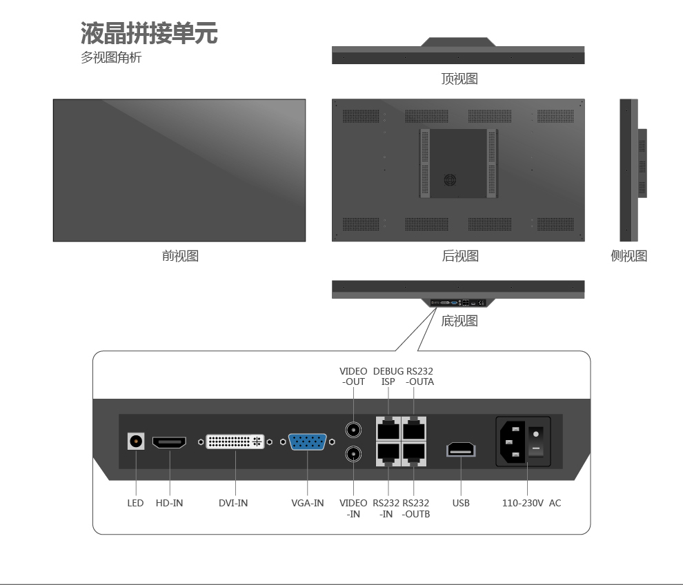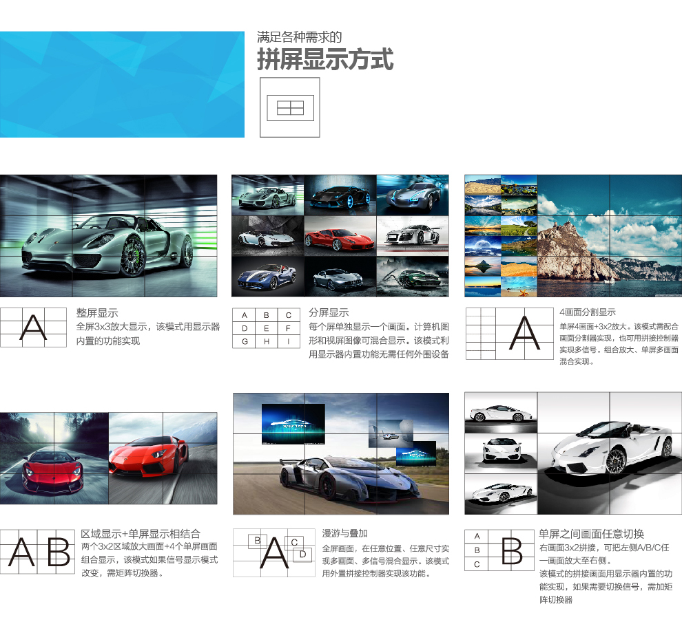 讯东超窄边55寸液晶拼接◆类型:三星/LG/BOE面板◆亮度:500-700cd/m2(可选)◆超窄边设计